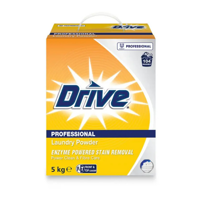 The Drive Professional Laundry Powder 5kg is a high-performance detergent designed for both commercial and domestic use. Its enzyme-powered formula effectively removes tough stains, dirt, and grime from a wide range of fabrics, including cotton, synthetics, and blends. This detergent is suitable for both top-loading and front-loading washing machines and delivers exceptional cleaning results in both hot and cold water. Each 5kg package provides up to 104 washes, making it a cost-effective choice for large-scale laundry needs.